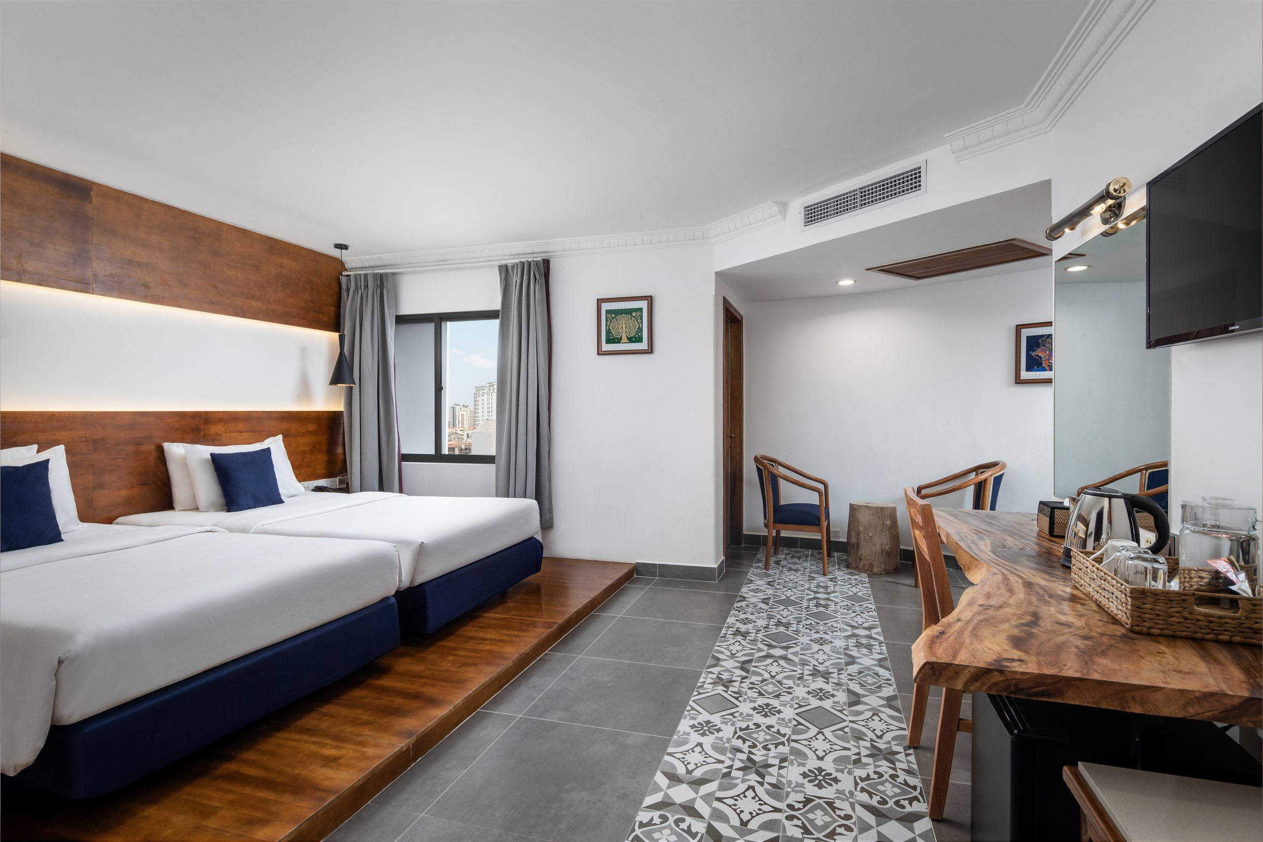 This small but ornate room is defined by classic features and decorative finishes that give the space an air of sophistication. The first choice for solo travellers and couples, it’s tempting to hibernate in this cosy cabin, while the more adventurous guests are just a stone’s throw from Phnom Penh’s best attractions.